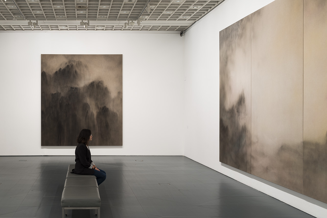 As suas enormes telas líquidas, entrecruzadas com planos monocromáticos negros que interrompem o fluxo da visão, revelam um pensamento conceptual preciso sobre a escala da pintura, a questão da representação, a fenomenologia da perceção e, sobretudo, sobre a temporalidade da fruição artística.